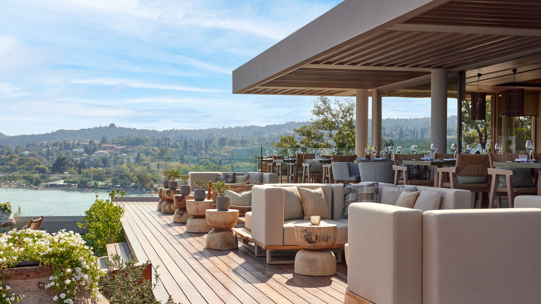 If you think Spanish cuisine is just about tapas then think again! Yes, there are the famous sharing plates on the menu, but dining at Oliva also means taking a gastronomic tour of Spain in spacious, relaxed surroundings complemented by fabulous views over the Ionian Sea. The a la carte menu has been created by two-Michelin-star chef Andoni Luis Aduriz, so get ready to enjoy some real Spanish cuisine with a modern twist.