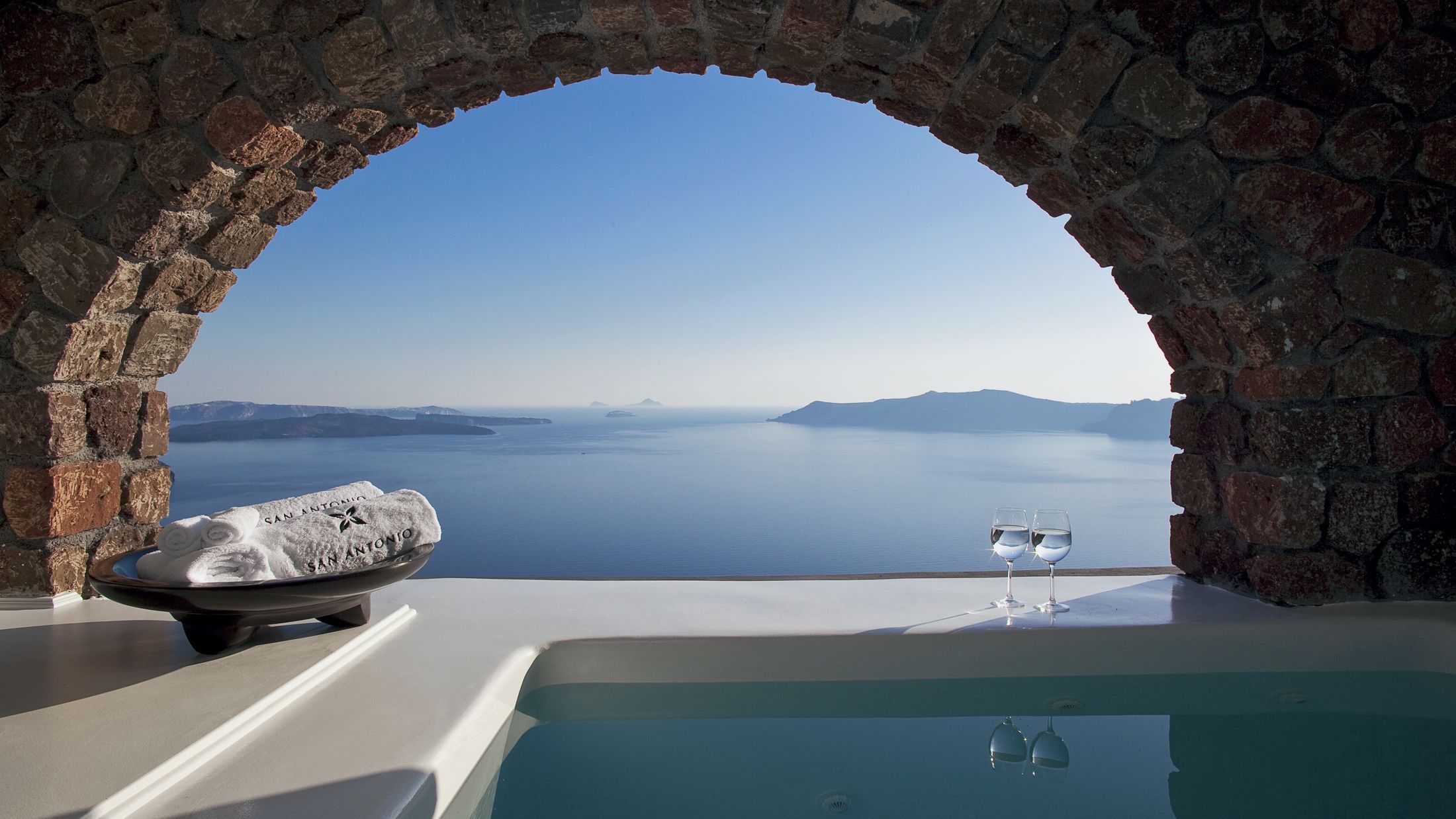 Soak in the views from your own hot tub, positioned on the spacious veranda. A Superior Suite rooms a stylish stay in calm, modern surroundings - with beautiful views of the Aegean Sea and Caldera.