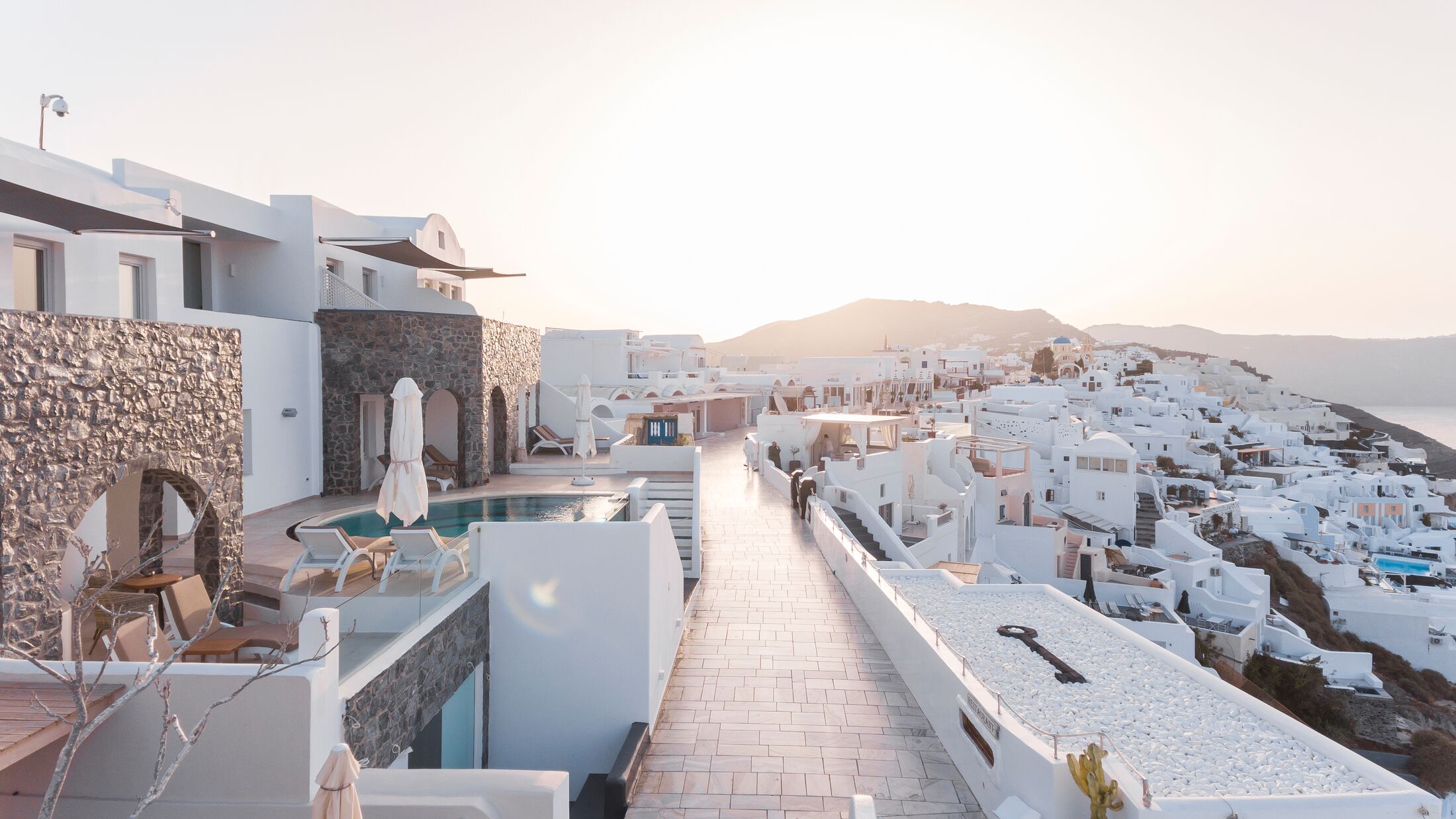 The Grand Suite comes with its own private heated pool and stunning views over the Caldera.