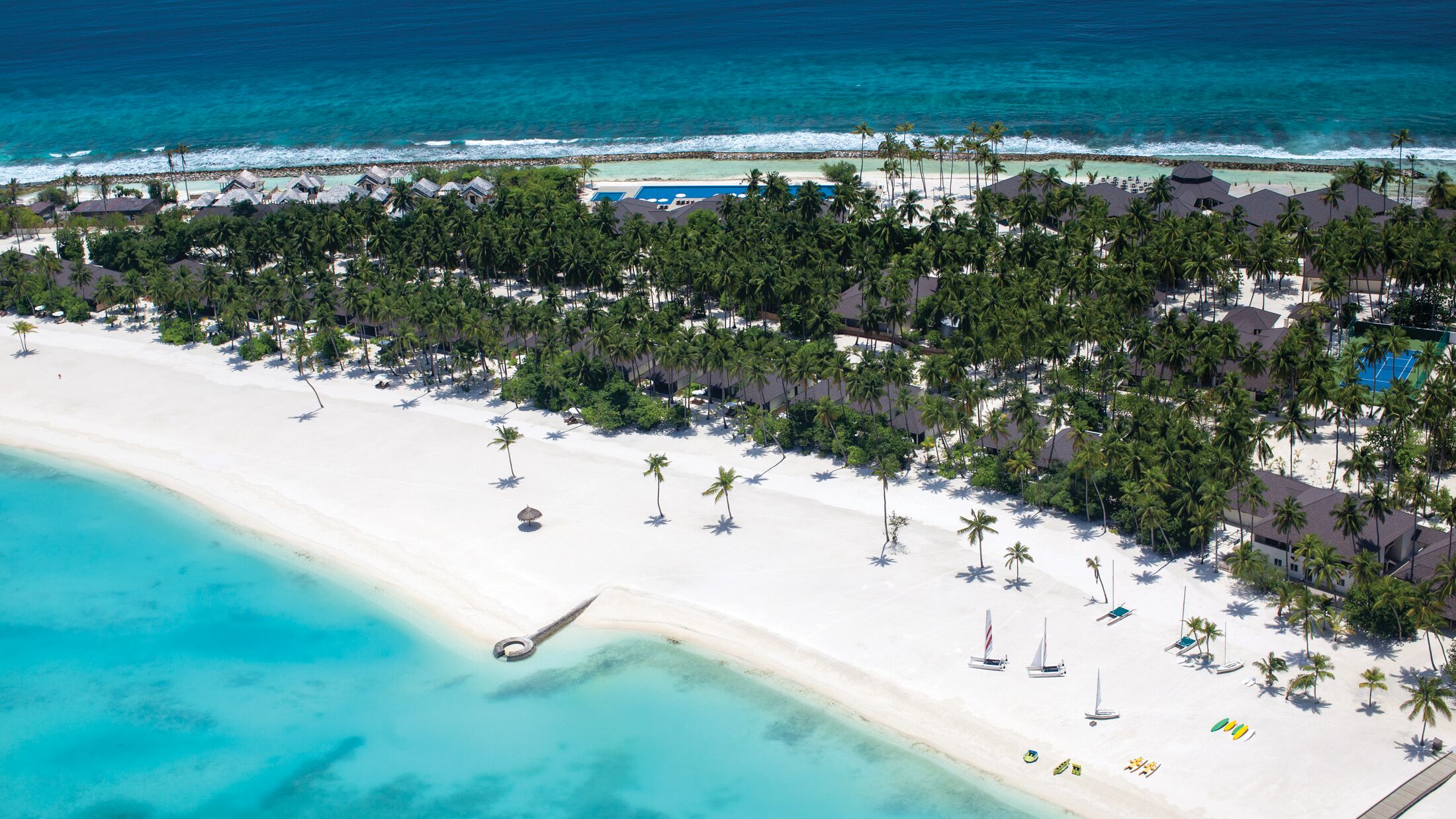 Situated at the northern-most tip of the island; these signature villas are a secluded sanctuary offering direct access to the beach and feature an extensive outdoor private area with a 30m² private pool. The open-air bathroom has a whirlpool bathtub with the following benefits: buggy service, in-villa set menu breakfast (optional), complimentary dining at speciality restaurant, butler service (4 butlers per 10 villas), early morning muffin service with tea and coffee (until 08:00), à la carte breakfast served at The Sunset (07:30-09:30).